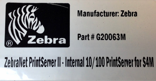 ZEBRA S4M PN# G20063M INTERNAL ZEBRANET PRINTSERVER 10/100,